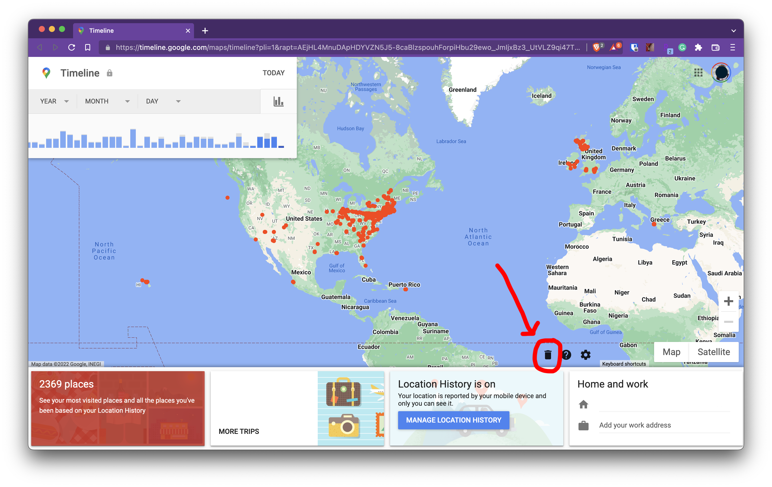 - If you’re not already on the Timeline, visit http://maps.google.com/timeline